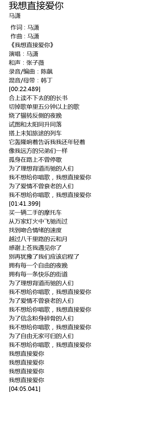 | [02:45.398] | 我不想给你唱歌,我想直接爱你 |