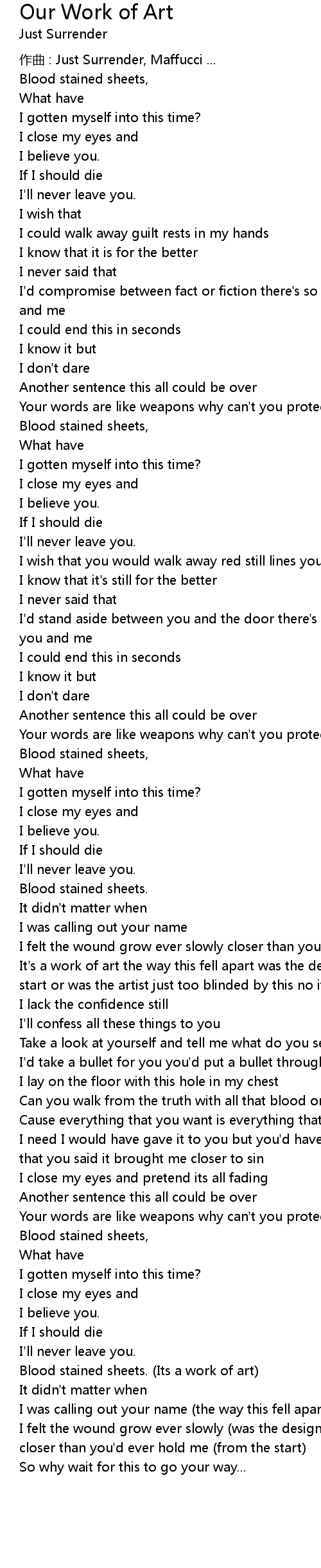 | I need I would have gave it to you but you'd have take it from me and every word that you said it brought me closer to sin | |