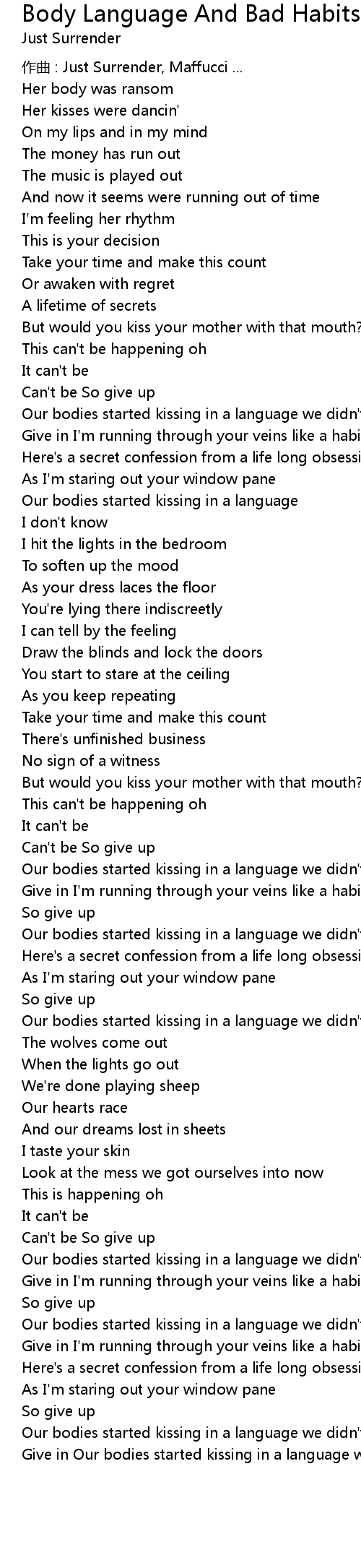 | Give in Our bodies started kissing in a language we didn' t know Give up! |