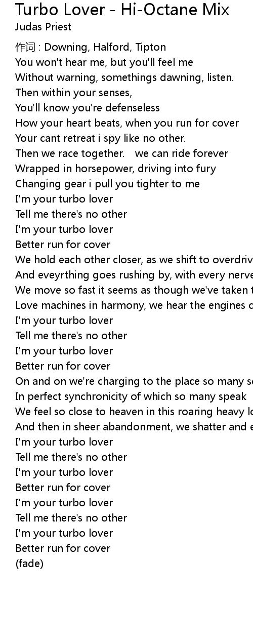 | I'm your turbo lover | |