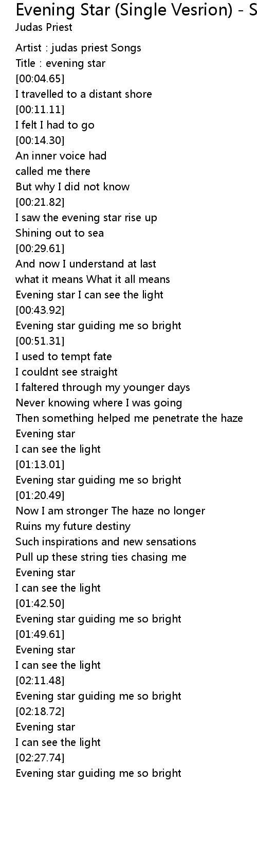 | Song | Evening Star (Single Vesrion) - Single Vesrion |