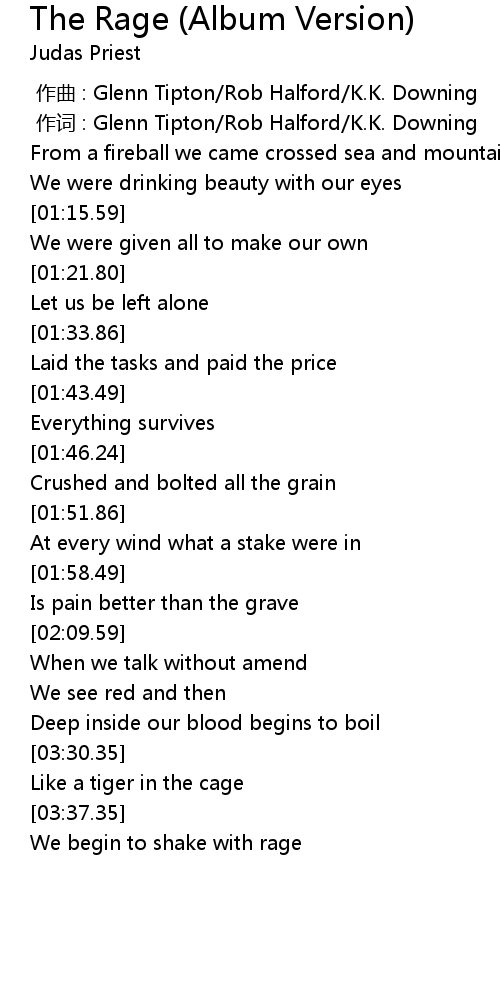 | [00:01.00] | zuò cí : Glenn Tipton Rob Halford K. K. Downing |