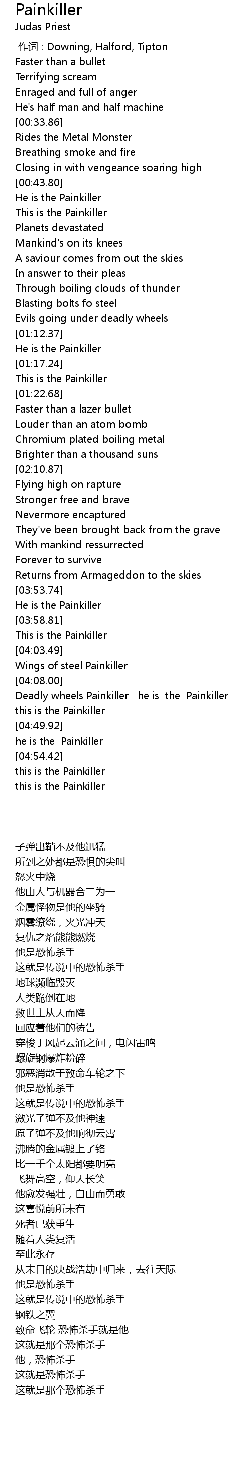 | [04:09.43] | Deadly wheels Painkiller he is the Painkiller |
