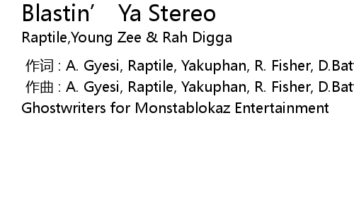 | [00:00.000] | zuò qǔ : A. Gyesi, Raptile, Yakuphan, R. Fisher, D. Battle Raptile Ghostwriters for Monstablokaz Entertainment |