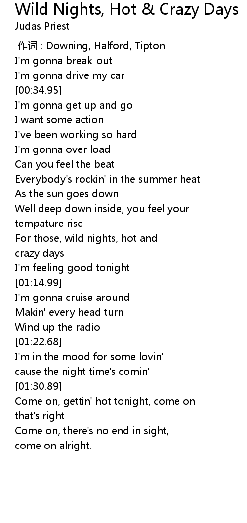 | Song | Wild Nights, Hot & Crazy Days |