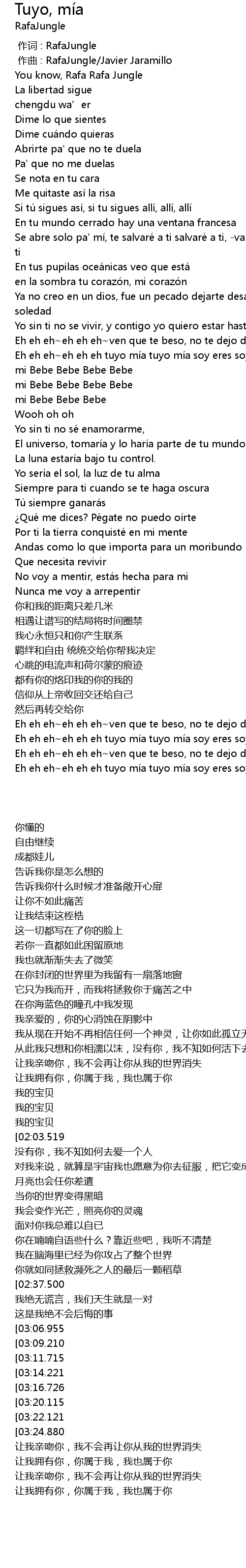 | [01:49.161] | Eh eh eh eh eh eh tuyo mi a tuyo mi a soy eres soy eres |