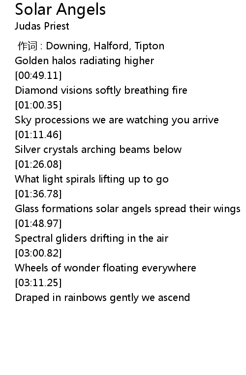 | [01:41.15] | Glass formations solar angels spread their wings |