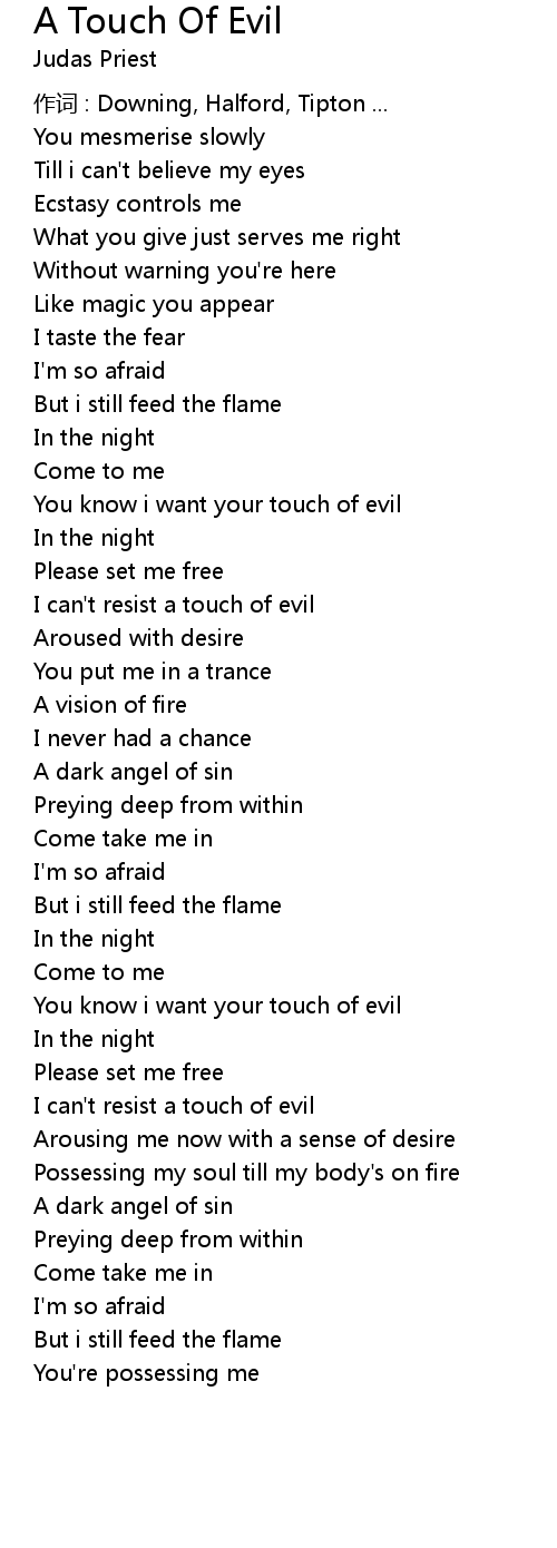 | Song | A Touch Of Evil |