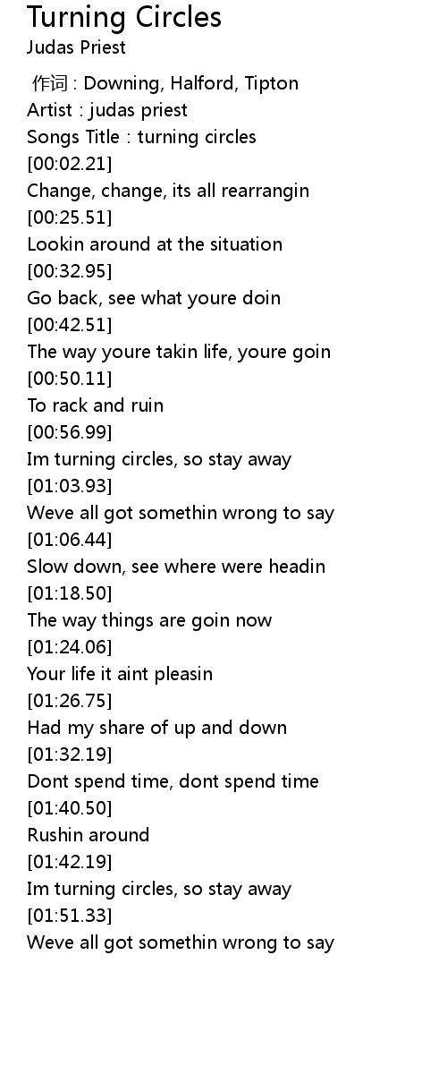 | [00:01.28] | Songs Title: turning circles |