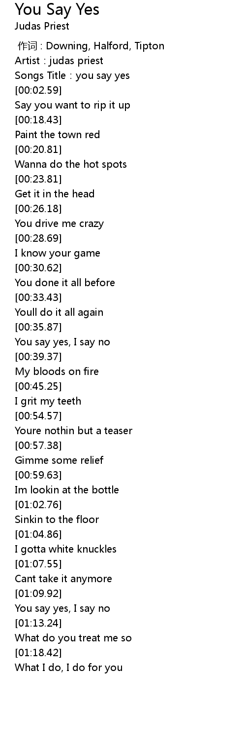| [00:38.31] | You say yes, I say no |