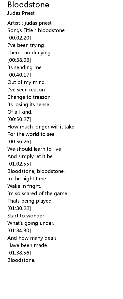 | [01:07.58] | Bloodstone, bloodstone. |