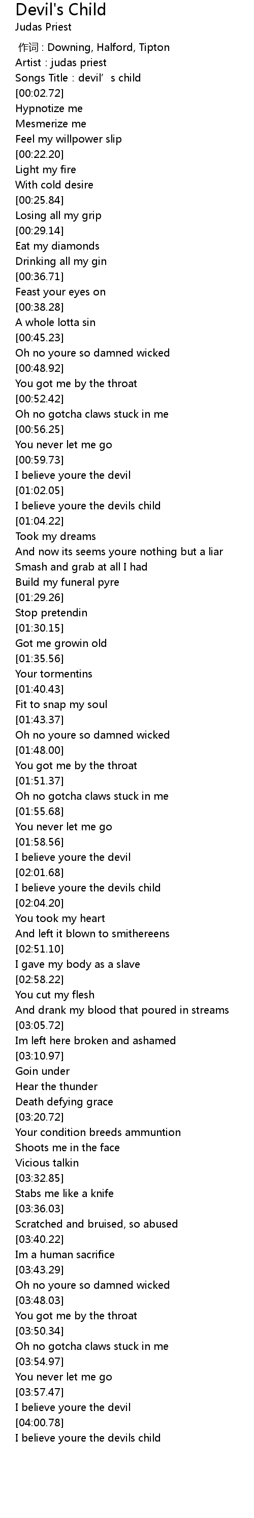 | [00:00.00] | 作词 : Downing, Halford, Tipton |