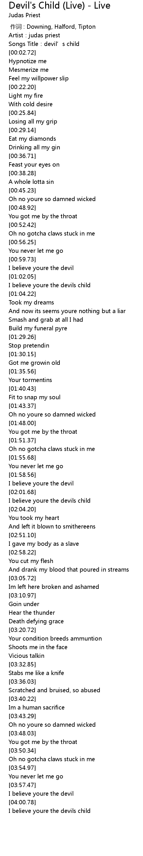 | [00:00.00] | 作词 : Downing, Halford, Tipton |