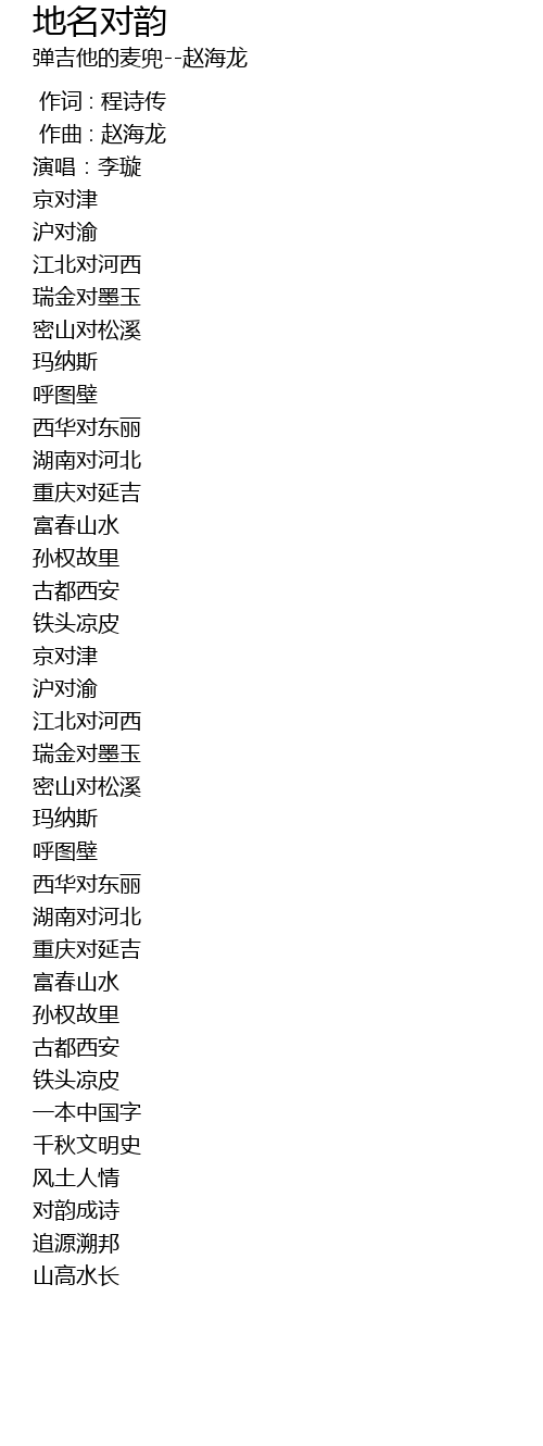 地名对韵