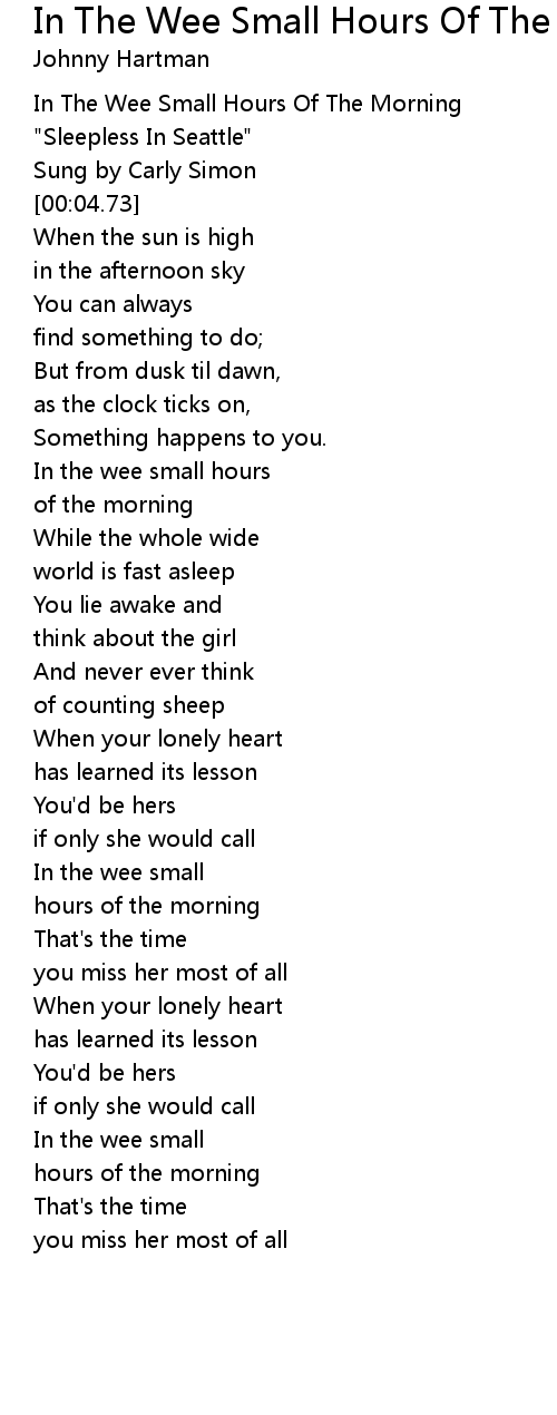 | [00:01.47] | In The Wee Small Hours Of The Morning |