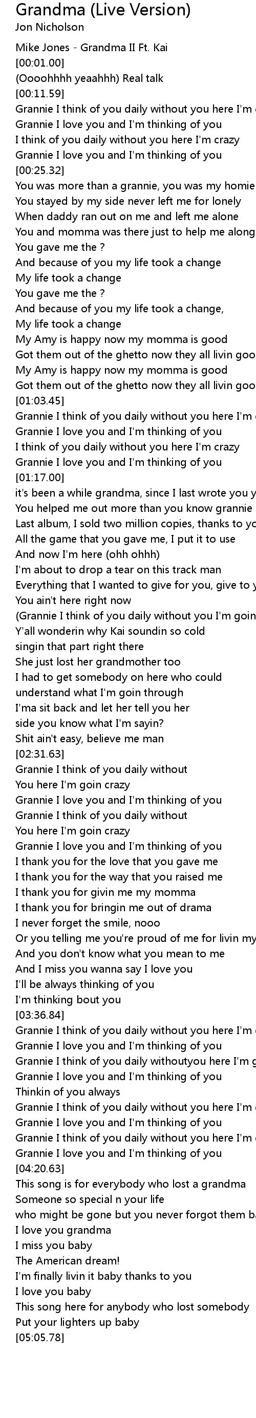 This song is for everybody who lost a grandma |