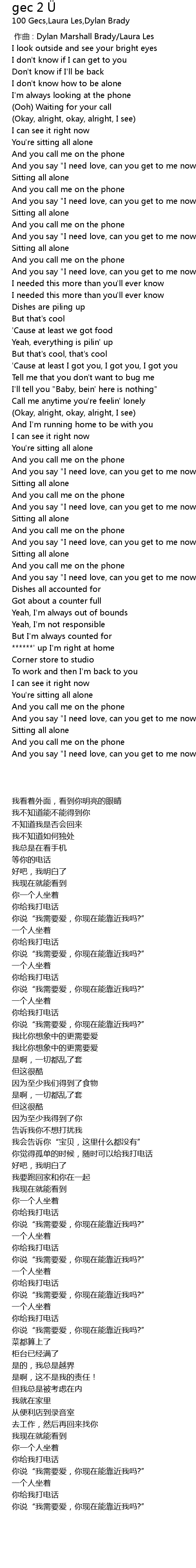 | [01:38.32] | And you say " I need love, can you get to me now?" |