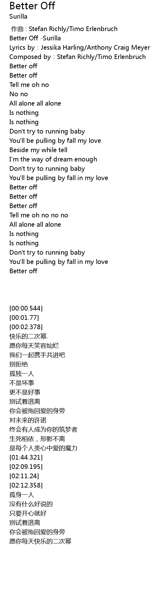 | [02:32.349] | Better off |