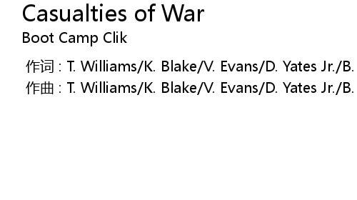 | [00:00.000] | 作曲 : T. Williams/K. Blake/V. Evans/D. Yates Jr./B. Stefanic |
