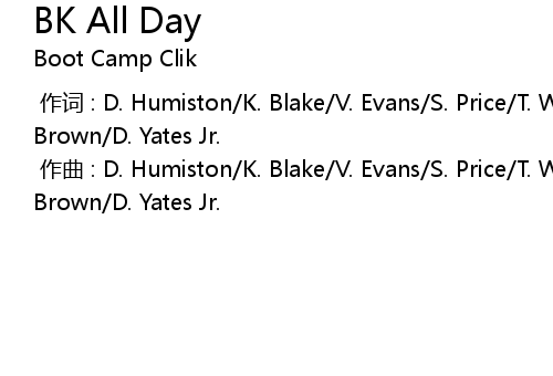 | [00:00.000] | 作曲 : D. Humiston/K. Blake/V. Evans/S. Price/T. Williams/C. Brown/D. Yates Jr. |