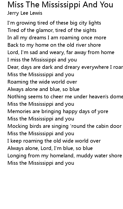 I miss the Mississippi and you |