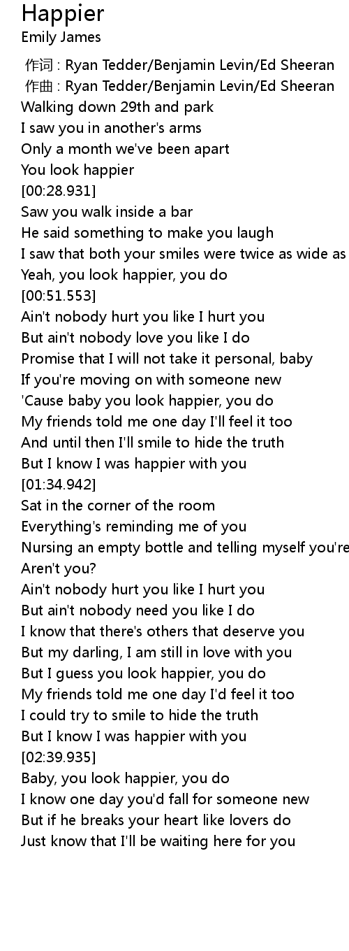 | [01:13.809] | 'Cause baby you look happier, you do |