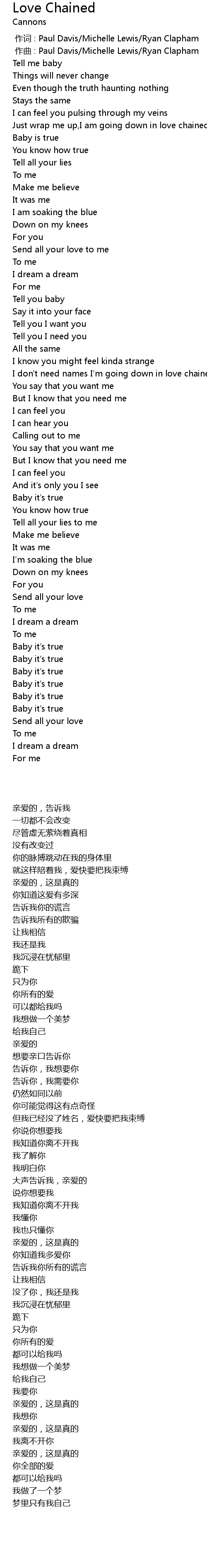 | [00:00.000] | 作词 : Paul Davis/Michelle Lewis/Ryan Clapham |