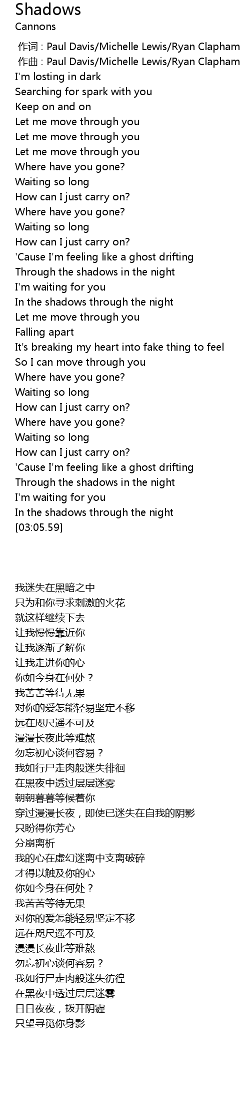| [02:50.90] | Through the shadows in the night |