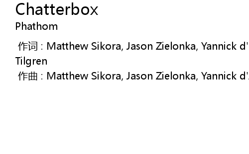 | [00:00.000] | 作词 : Matthew Sikora, Jason Zielonka, Yannick d' Assgines, Anton Tilgren |