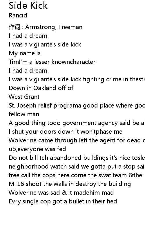 | I was a vigilante' s side kick fighting crime in thestreets together | |
