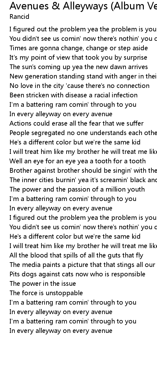 In every alleyway on every avenue |