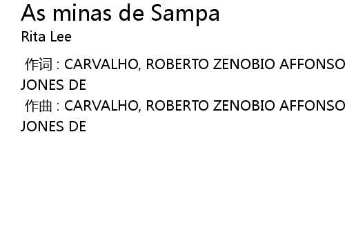 | [00:00.000] | 作词 : CARVALHO, ROBERTO ZENOBIO AFFONSO DE / CARVALHO, RITA LEE JONES DE |