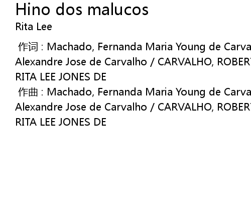 | [00:00.000] | 作曲 : Machado, Fernanda Maria Young de Carvalho / Machado, Alexandre Jose de Carvalho / CARVALHO, ROBERTO ZENOBIO AFFONSO DE / CARVALHO, RITA LEE JONES DE |