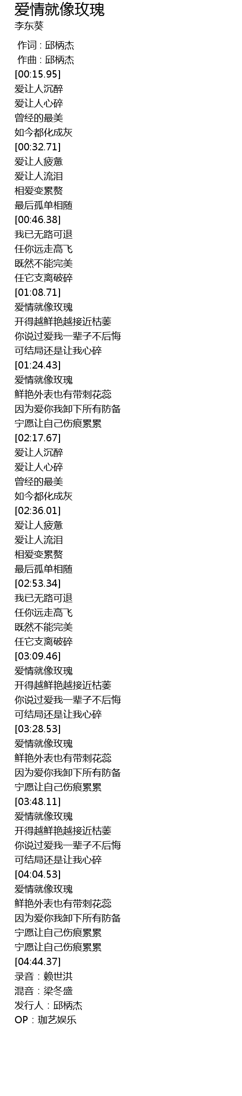 | [04:05.03] | ai qing jiu xiang mei gui |