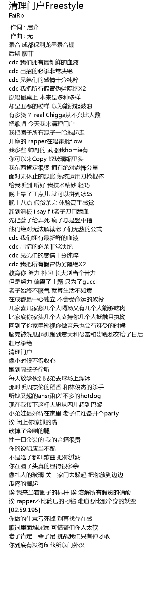 | [03:02.945] | 歌词里面堆屎尿 可惜哥们你人太软 |
