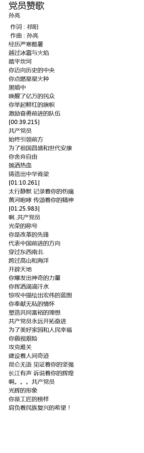 | [02:24.484] | 共产党员永远开拓奋进 |