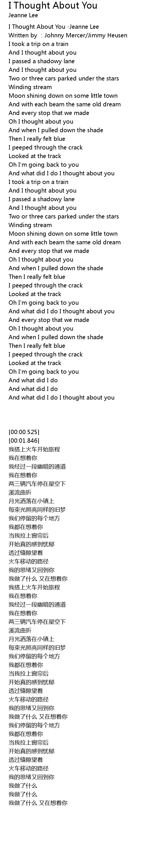 | [00:00.525] | I Thought About You -Jeanne Lee |