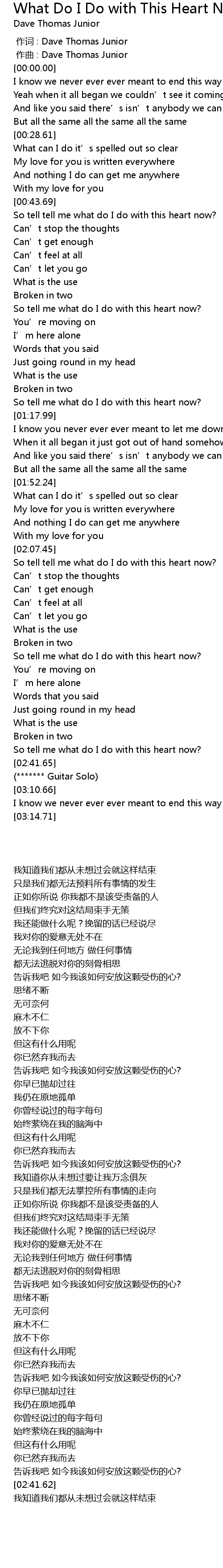 | [00:43.87] | So tell tell me what do I do with this heart now? |