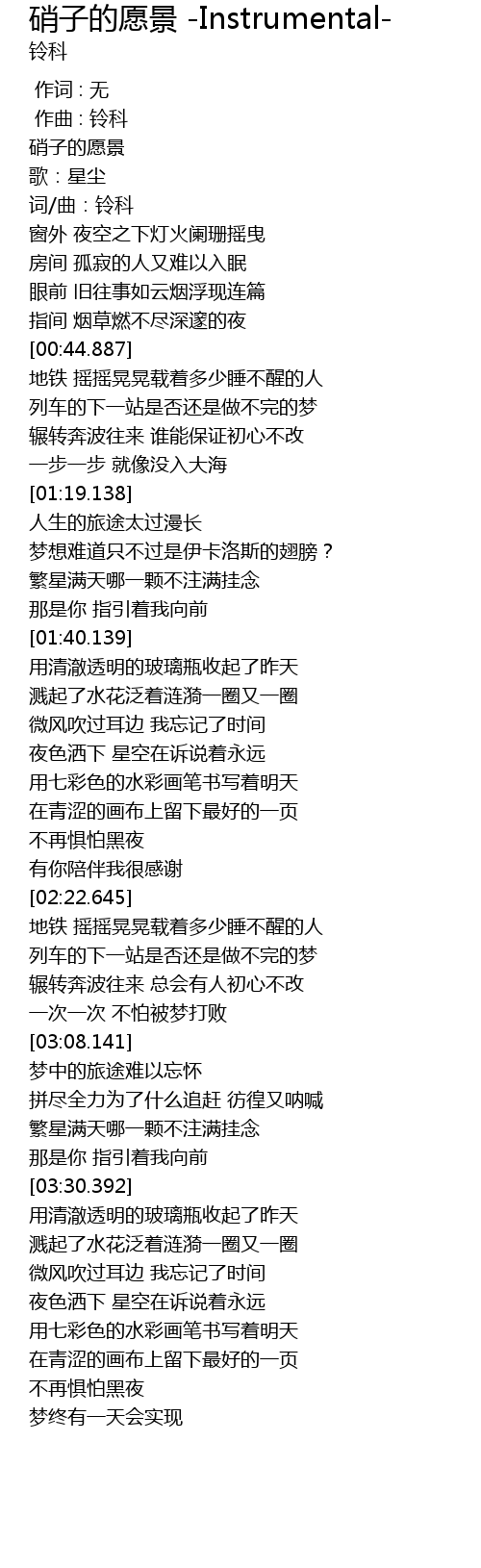 | [02:51.641] | 列车的下一站是否还是做不完的梦 |