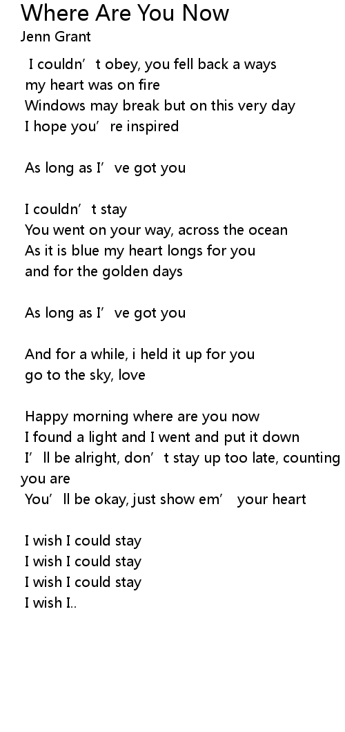 | Song | Where Are You Now |