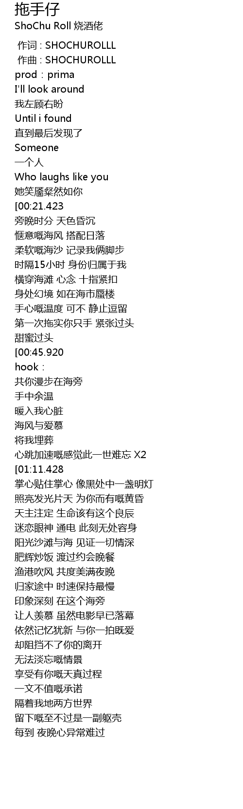| [00:41.849] | 第一次拖实你只手 紧张过头 |