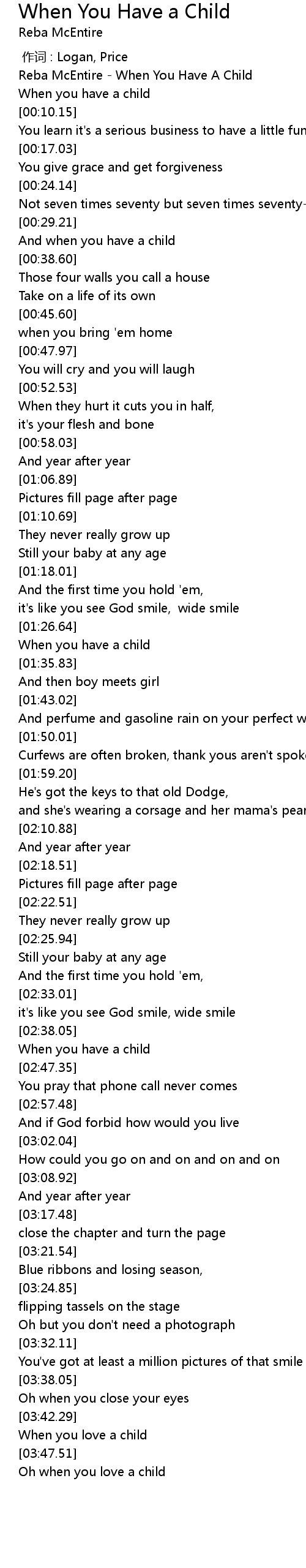 | [00:01.97] | Reba McEntire When You Have A Child |