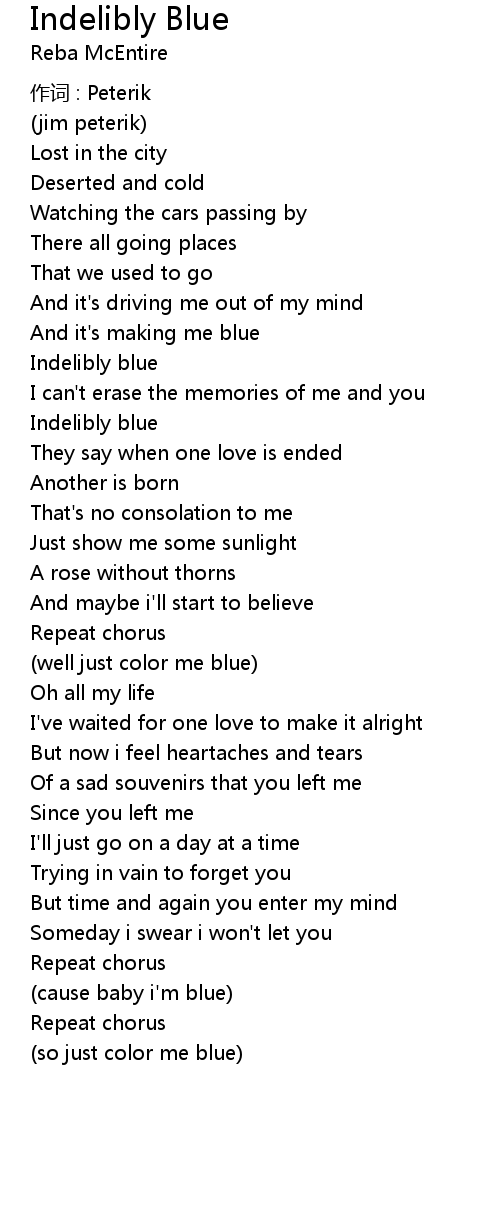 | Song | Indelibly Blue |