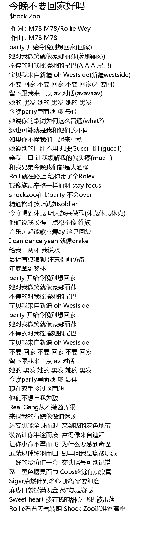 | [00:00.000] | 作词 : M78 M78/Rollie Wey |