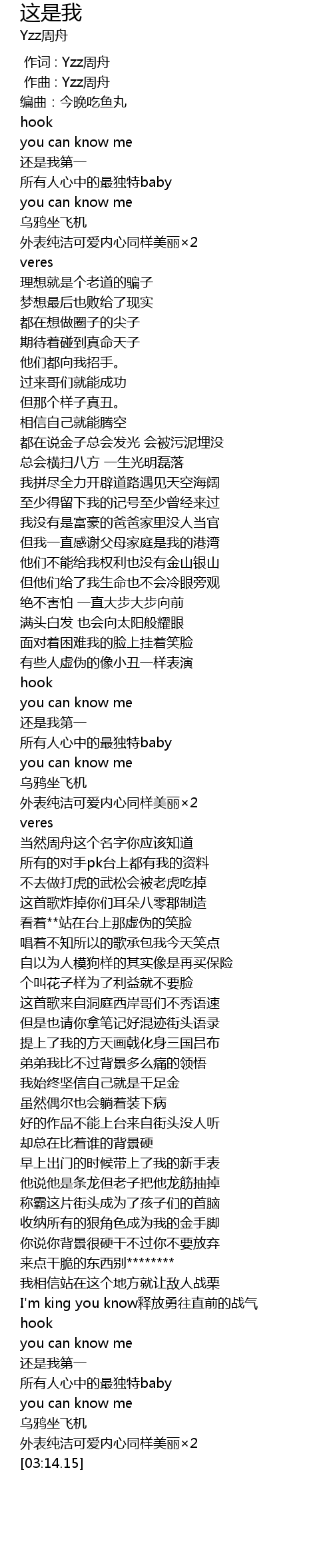 | [01:54.36] | suǒ yǒu de duì shǒu pk tái shàng dōu yǒu wǒ de zī liào |