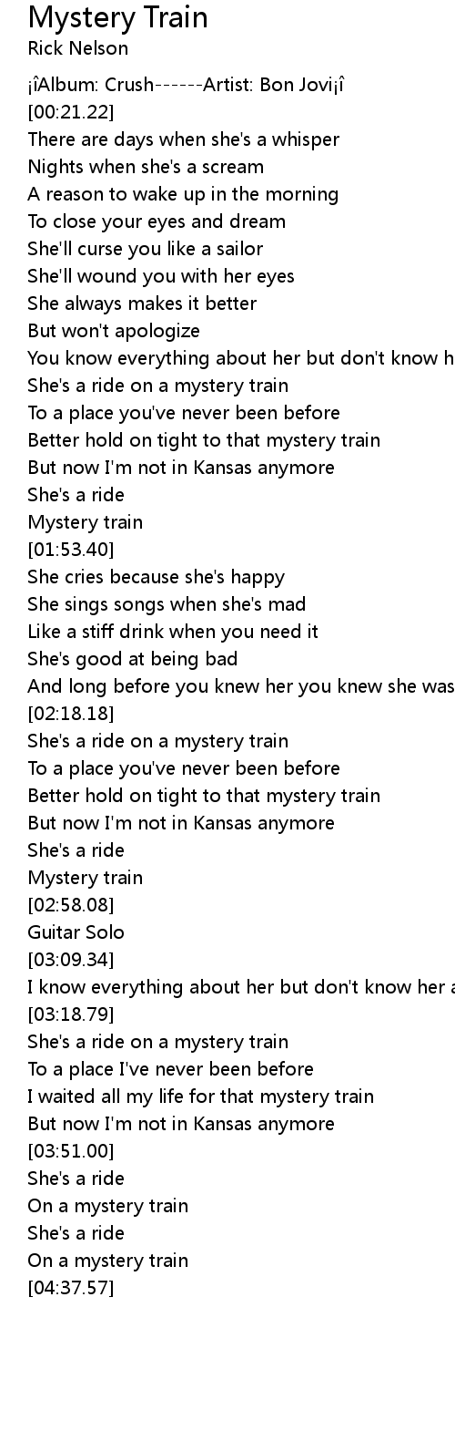 | [02:34.37] | Better hold on tight to that mystery train |