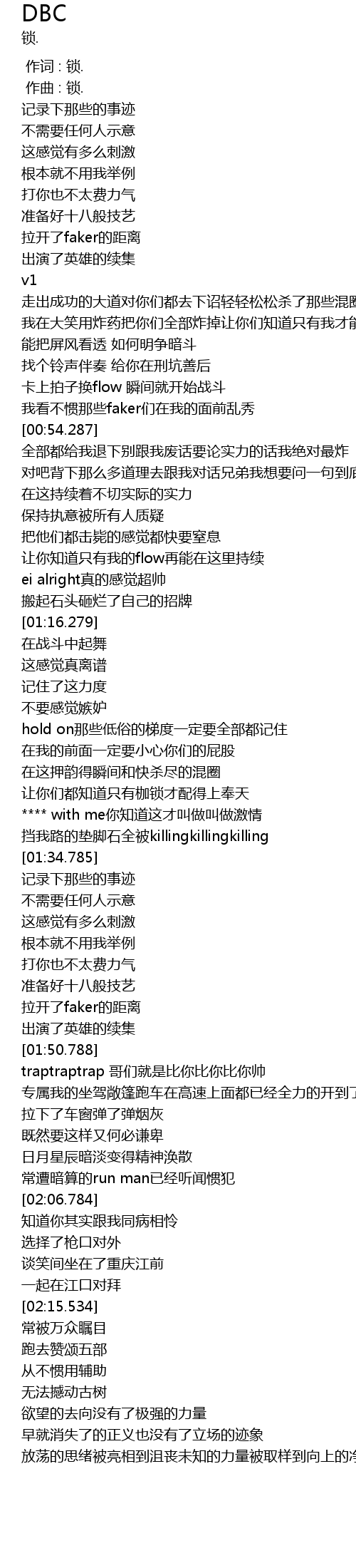 | [00:43.525] | 卡上拍子换flow 瞬间就开始战斗 |