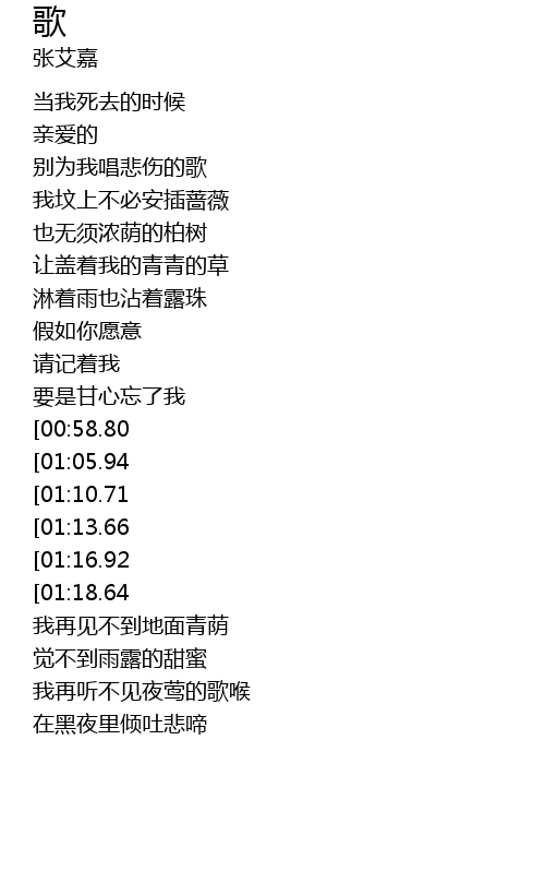 | [00:23.15] | 我坟上不必安插蔷薇 |