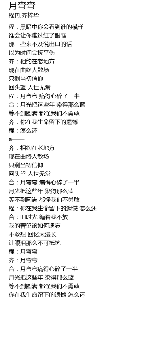 | [01:19.445] | 程:月弯弯 痛得心碎了一半 |