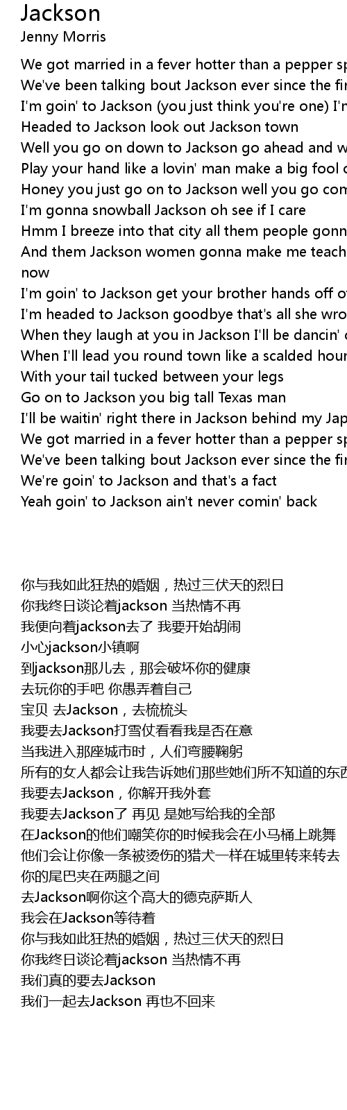 Yeah goin' to Jackson ain't never comin' back |